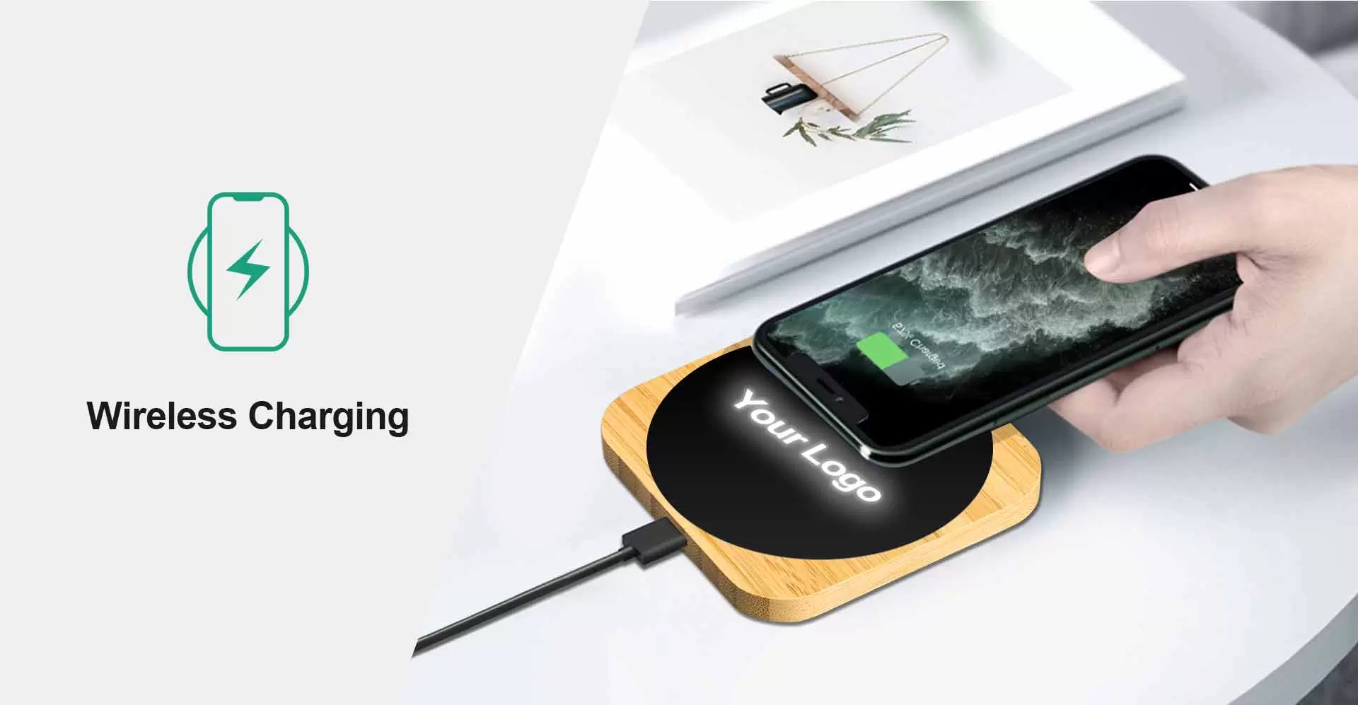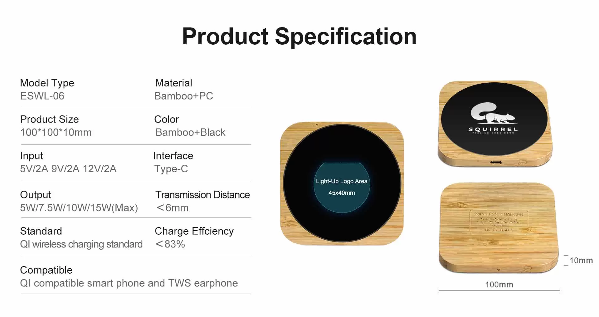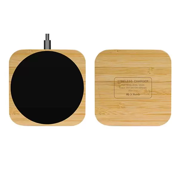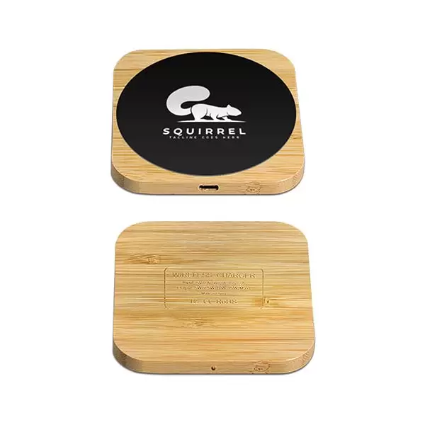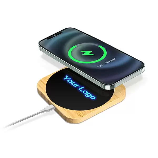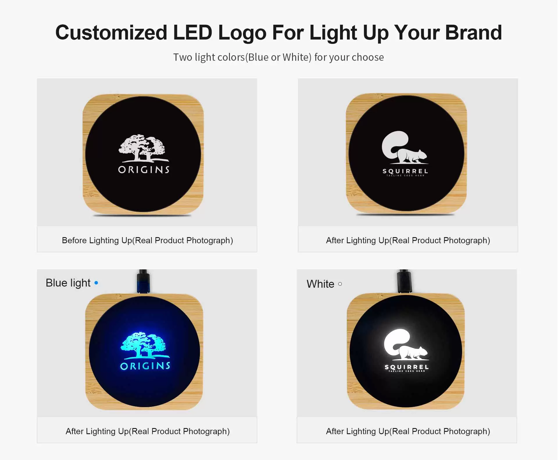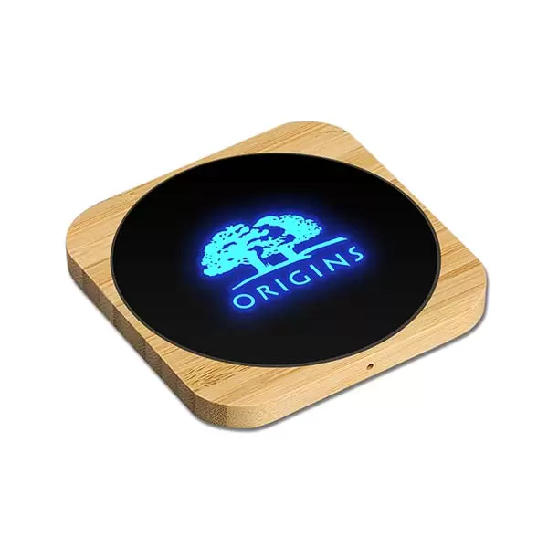 15W Light Up Logo Square Bamboo Fast Wireless Charger- ESWL-06