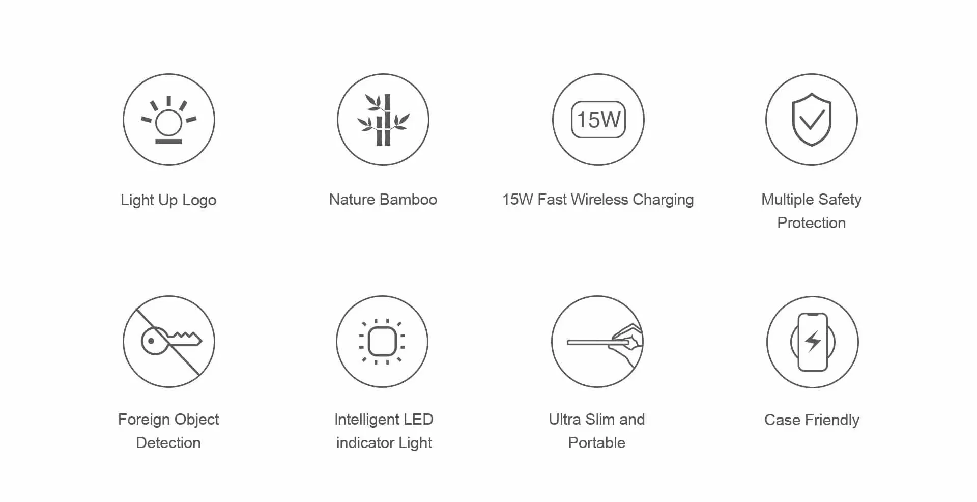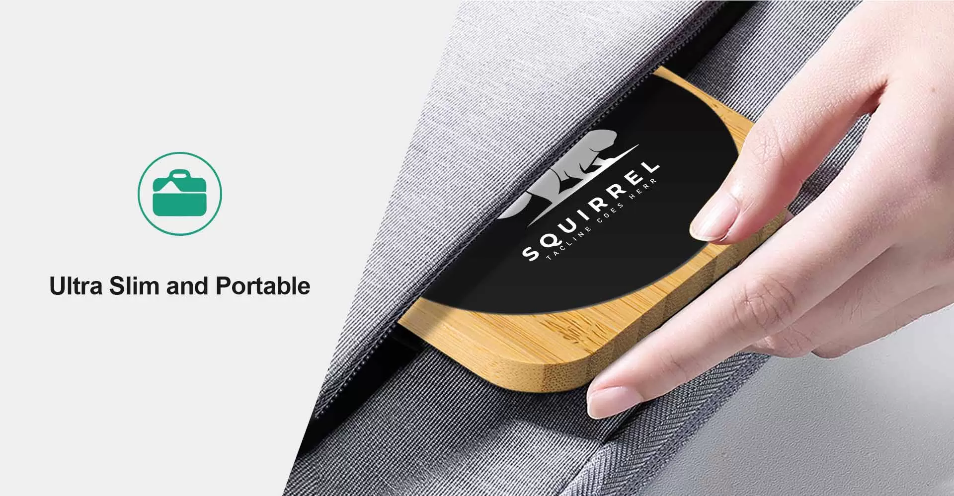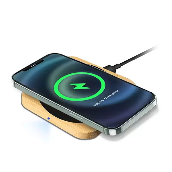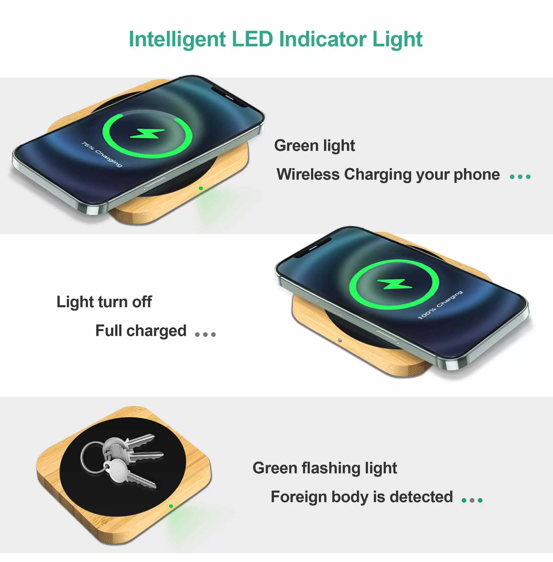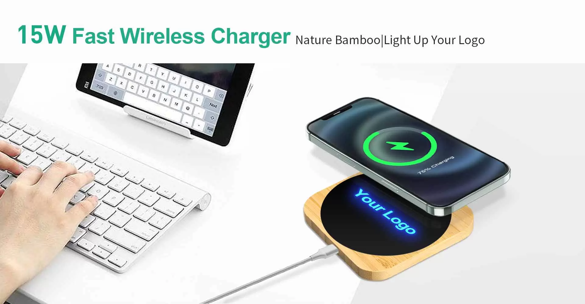 15W Light Up Logo Square Bamboo Fast Wireless Charger- ESWL-06
