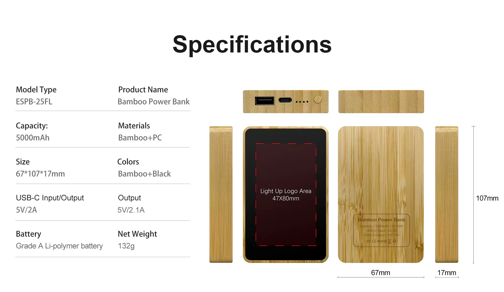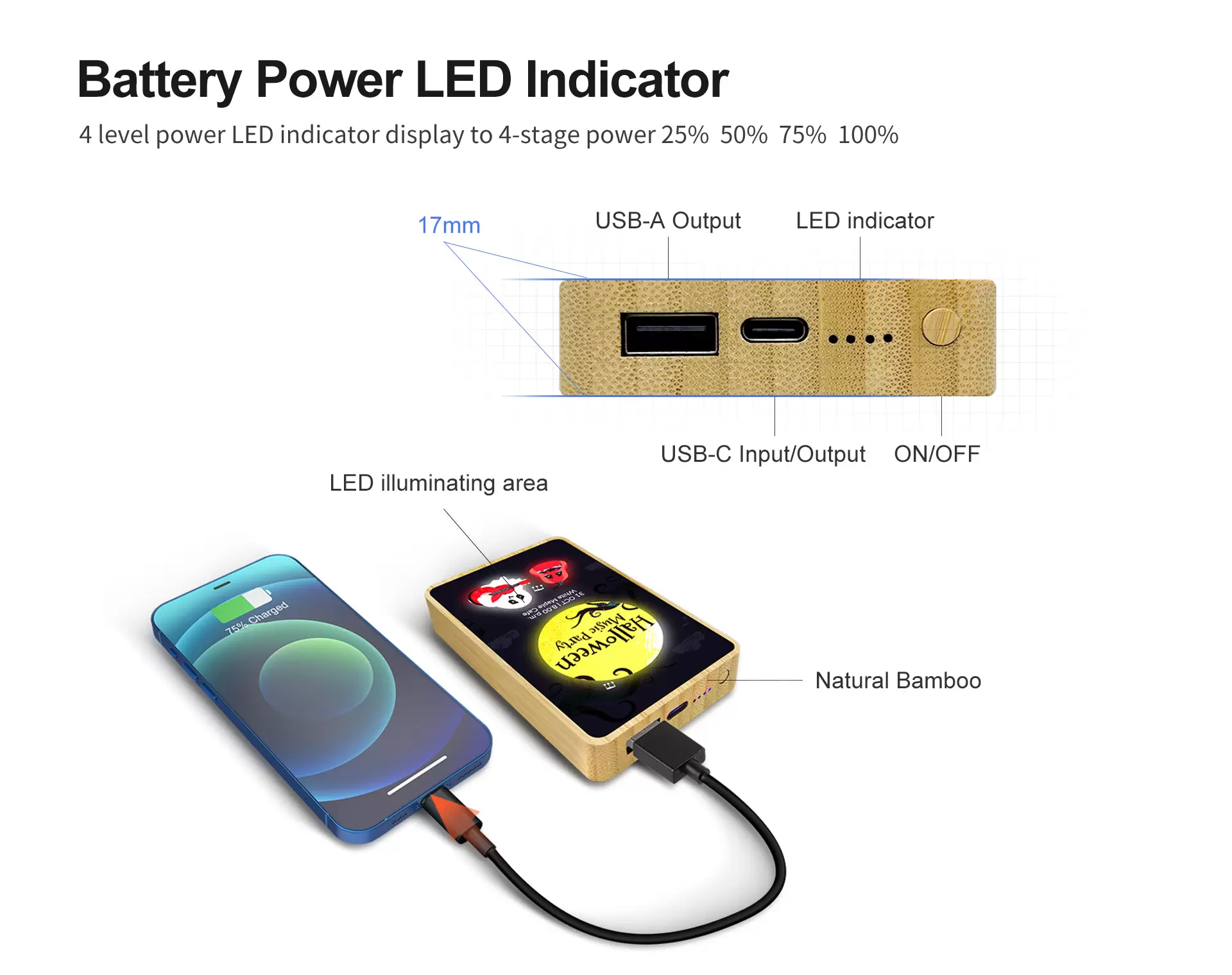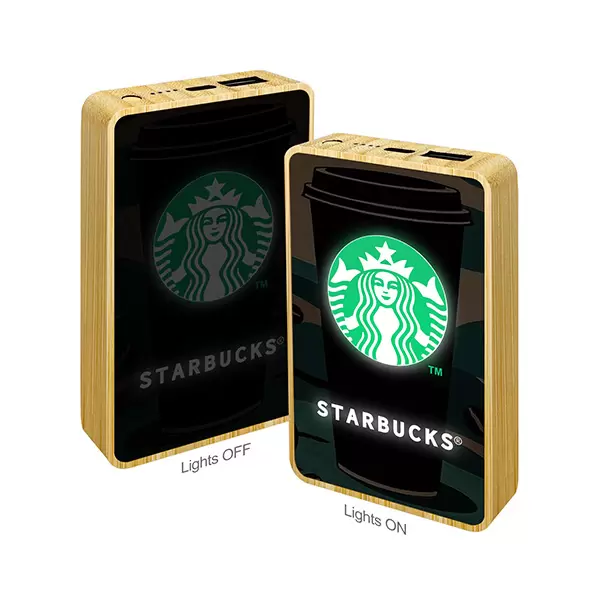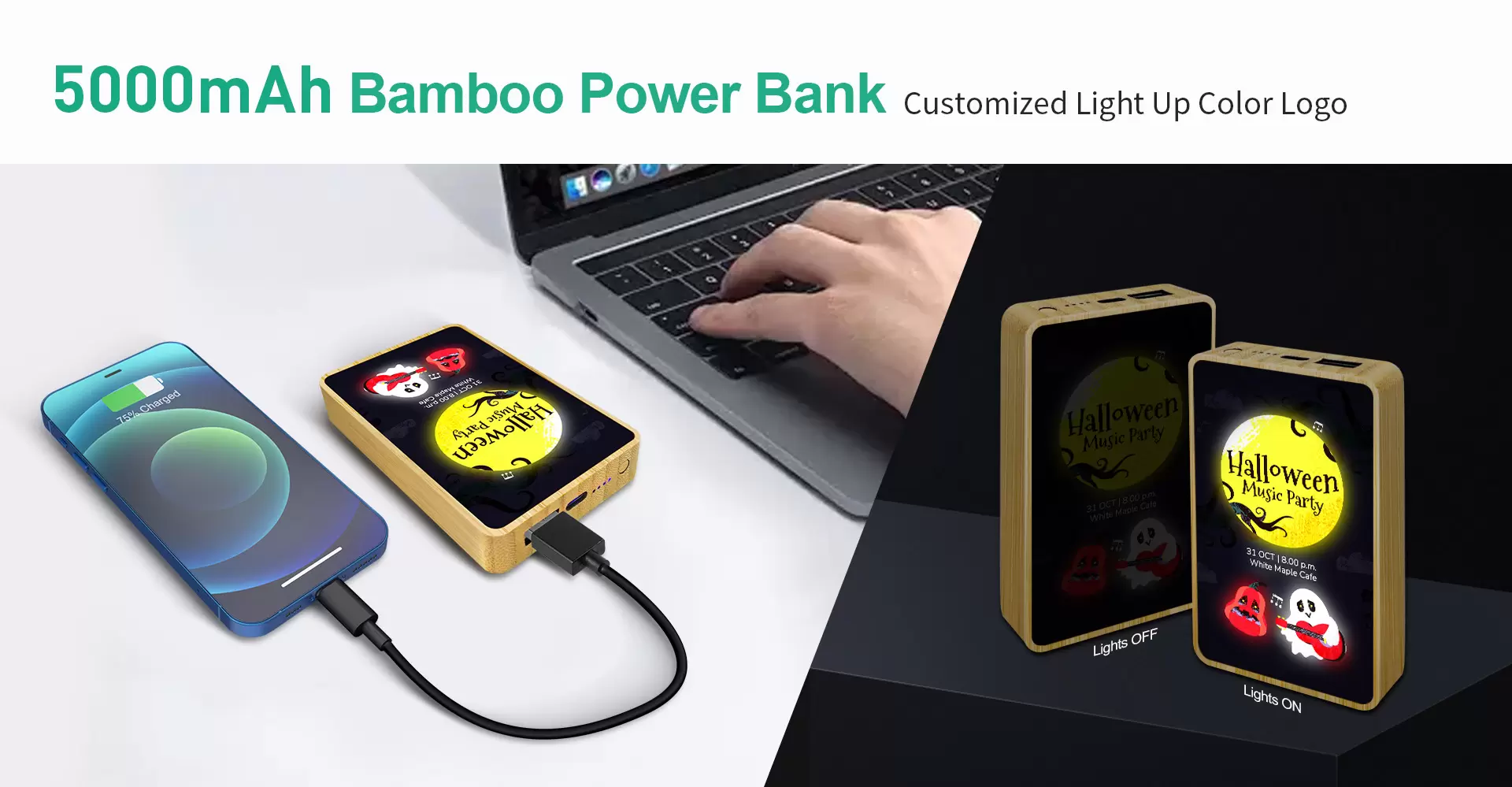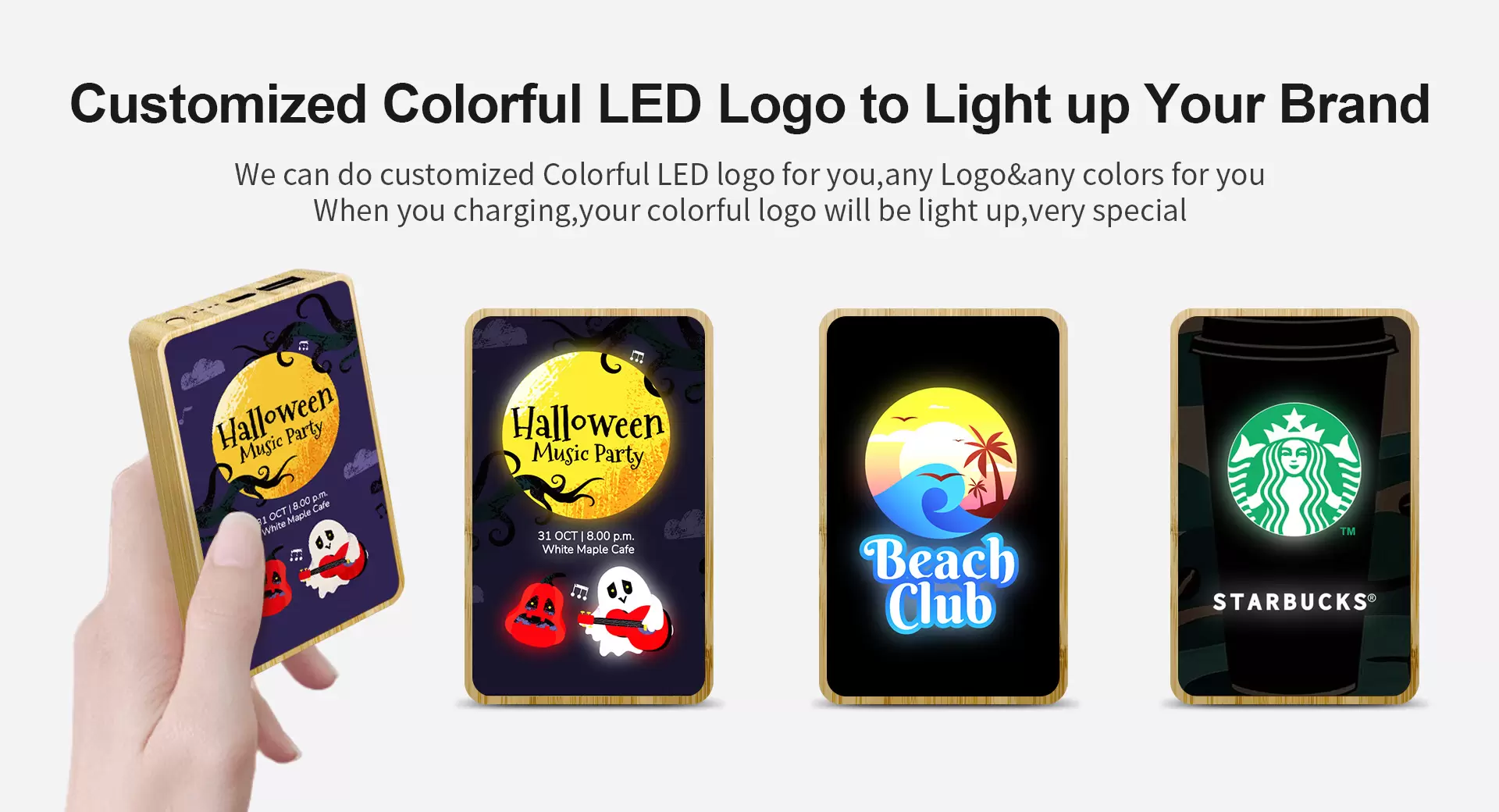 5000mAh Light Up Colorful Logo Bamboo Power Bank