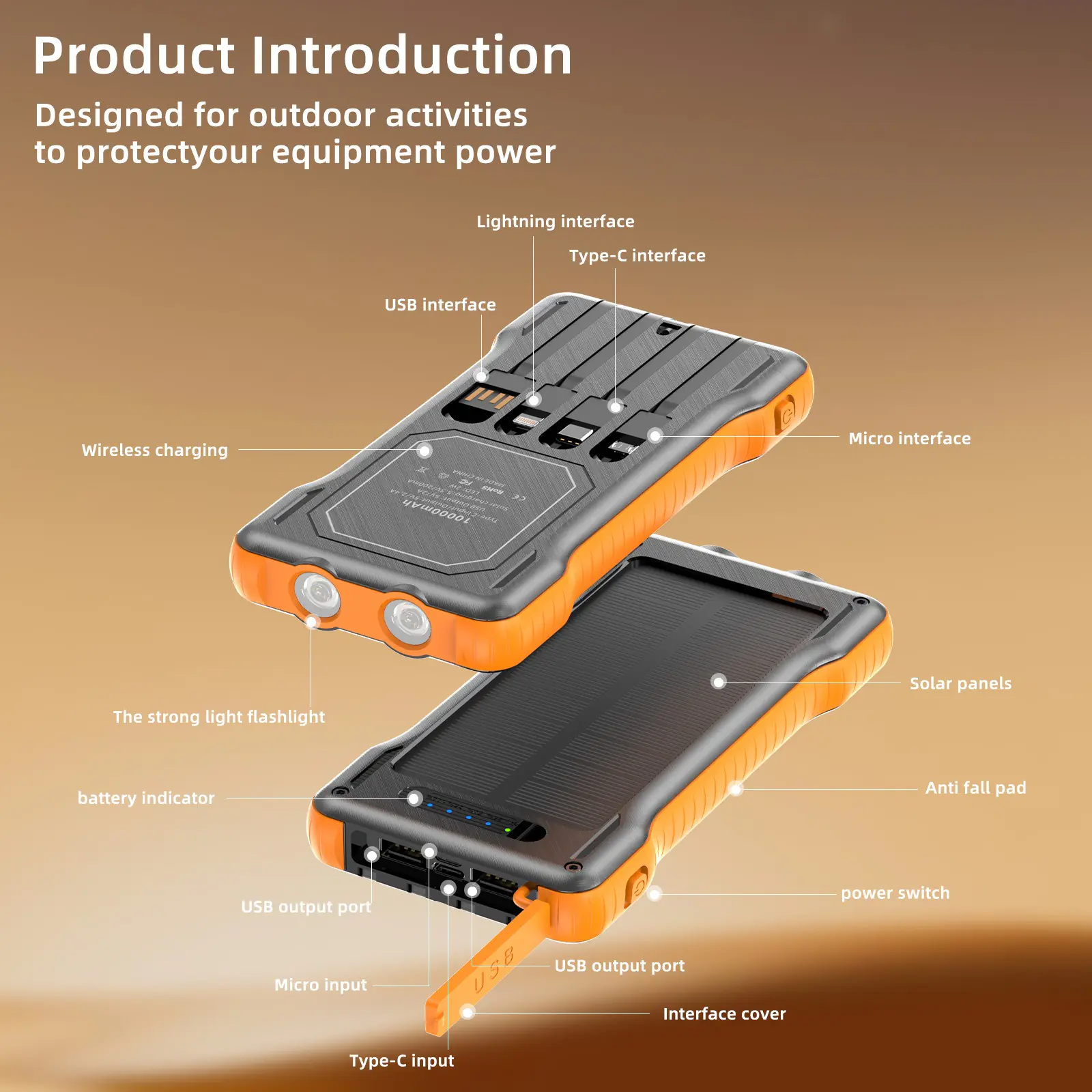 MP-J2053 Solar Power Bank with built-in Cables