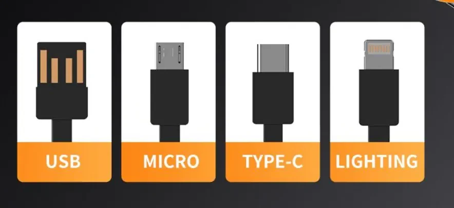 4 built-in cables: USB-A cable/Lightning cable/Type-C cable/Micro cable