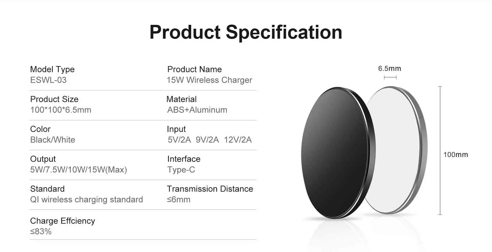 15W QI Certified Fast Wireless Charger-ESWL-03